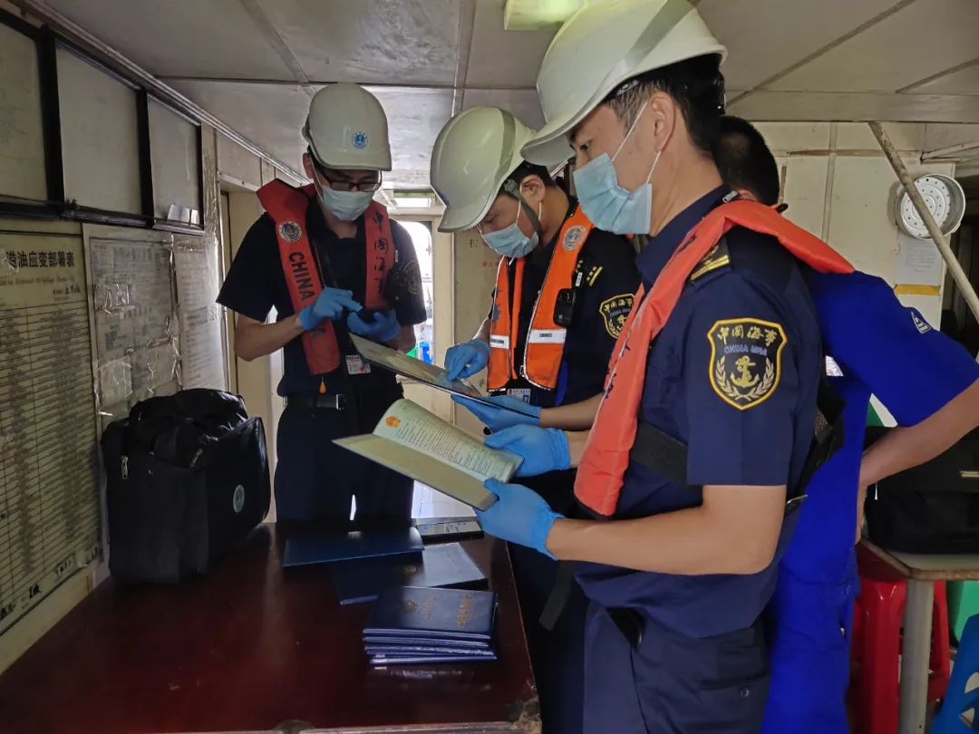 当天上午,记者随“海巡01701”轮同行。在繁忙的黄浦江上,杨浦海事局执法船艇“海巡01021”“海巡01027”“海巡01701”随机选择了一艘停泊在码头上的“重远燃供***”轮靠了过去,执法人员登上该轮,向前来招呼的船长亮出了自己的执法证件,要求船长配合此次检查。执法人员首先查看了该轮的船舶最低安全配员证书,并一一核实了船员信息,随后赴驾驶台以及机舱对船舶的各项功能进行了详细的检查和询问。检查完毕后,海巡艇继续前行,发现不远处一艘装满沙石的在航船舶其货舱未加盖舱布,于是立即通过甚高频通知该船就近停靠接受检查。