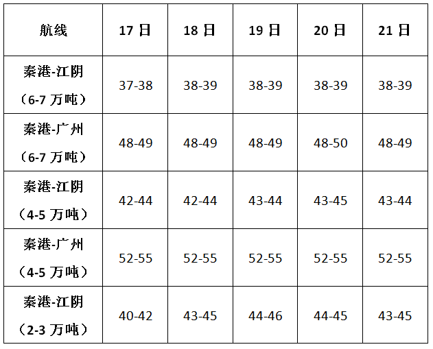 整体分析:买涨心理继续发酵,加之保证供电的压力,电厂采购热情不减,煤炭运输需求持续向好。面对火热的采购需求,北方港口煤炭资源跟不上“步伐”,船舶等货现象加重,进一步消耗市场运力。沿海煤炭运输市场火热行情延续,运价稳中有升。